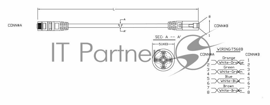| Цвет витой пары | Зеленый-белый/зеленый, Коричневый-белый/коричневый, Оранжевый-белый/оранжевый, Синий-белый/синий |