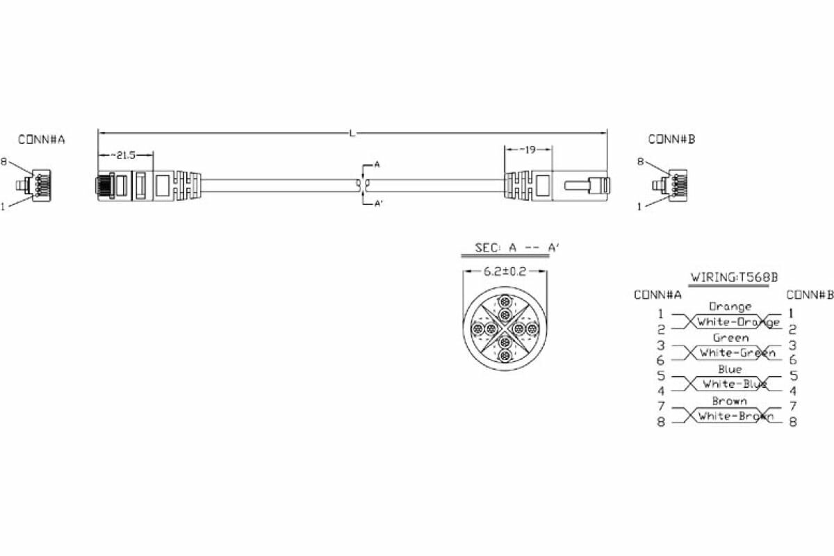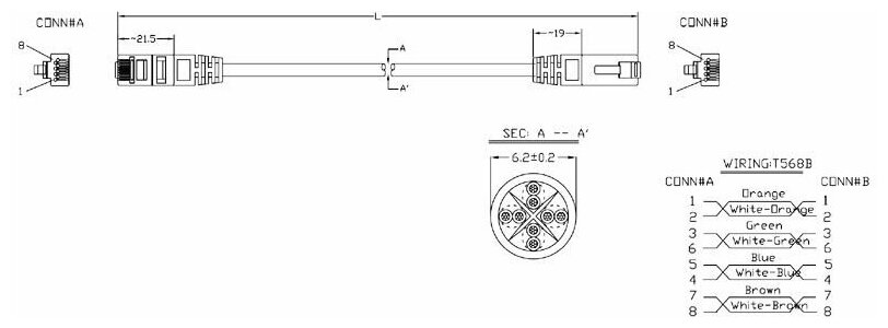 | Цвета витых пар | Зеленый-белый/зеленый, Коричневый-белый/коричневый, Оранжевый-белый/оранжевый, Синий-белый/синий |