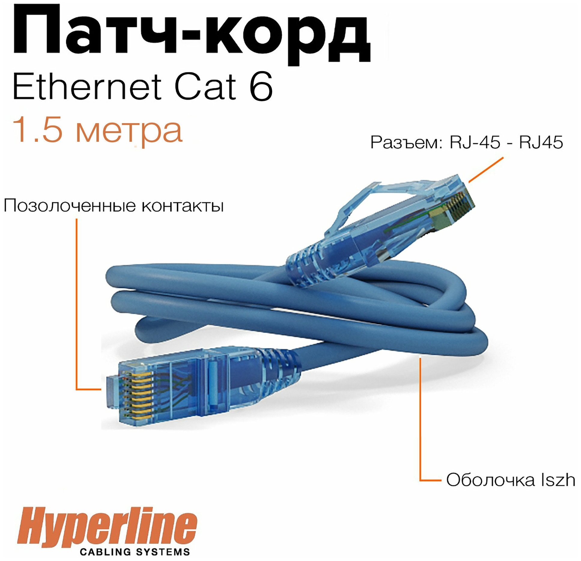 Кабель патч-корд UTP 6 кат. 15м. Hyperline PC-LPM-UTP-RJ45-RJ45-C6-1.5M-LSZH-BL