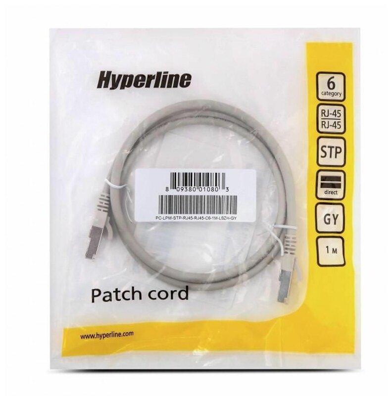 Кабель патч-корд FTP 6 кат. 1м. Hyperline PC-LPM-STP-RJ45-RJ45-C6-1M-LSZH-GY