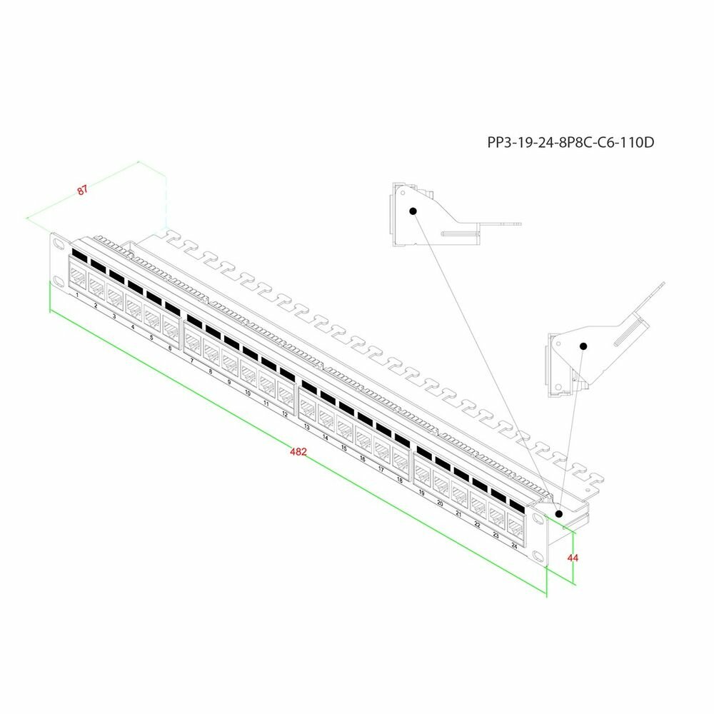 Патч-панель 19 24xRJ45 UTP Кат. 6 Hyperline PP3-19-24-8P8C-C6-110D