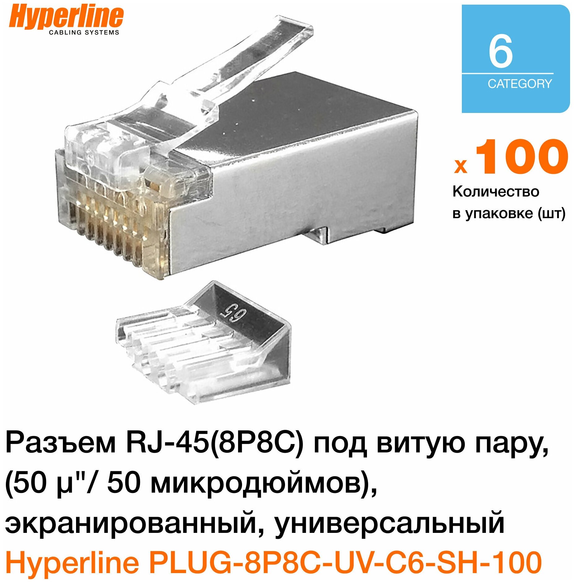 Разъем Hyperline PLUG-8P8C-UV-C6-SH-100