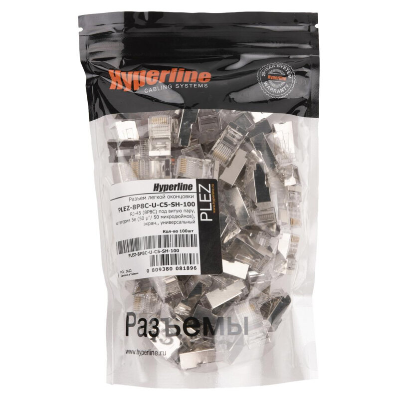Разъем Hyperline PLEZ-8P8C-U-C5-SH-100