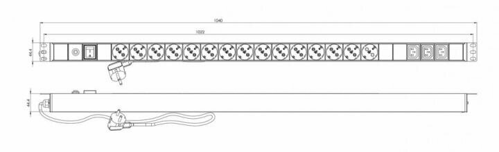 | Дополнительно * | Hyperline SHE-15SH-3IEC-SF-2.5EU Блок розеток, вертикальный, 15 розеток Schuko, 3 розетки IEC320 C13, выключ. с подсветкой, защита от перенапряж., кабель питания 2.5м (3х1.5мм2) с вилкой Schuko 16A, 250В, 1040x44.4x44.4мм (ДхШхВ), корпус алюминий, черный |