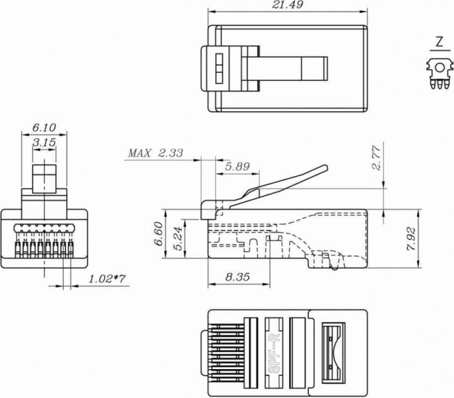 | Наименование модели | PLEZ-8P8C-U-C6-SH-100 |