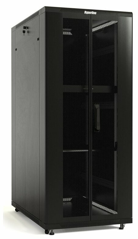 Шкаф напольный Hyperline обеспечивает монтаж оборудования по стандарту 19" (МЭК 297-2). Подходит для установки как в офисных, так и технических помещениях. Перфорация 75% металлических дверей обеспечивает отличную вентиляцию, а распашные двери облегчают доступ в ограниченном пространстве помещения. Данный вариант дверей прекрасно подходит для установки шкафов рядами в охлаждаемом помещении.