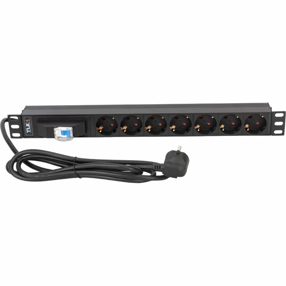 Блок электрических розеток TLK 19, металлический корпус TLК-RSC07-MD-04-BK - корпус с креплением 19” и высотой 1U, который изготовлен из алюминиевого профиля толщиной 1,2 мм. Все гнезда блока имеют заземляющие контакты. Корпус из алюминиевого профиля дает дополнительную защиту от повреждения при случайных ударах, более высокую термостойкость, облегченную конструкцию, улучшенное охлаждение и дополнительное экранирование от электрических помех.
