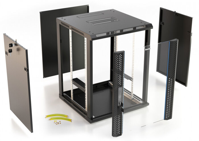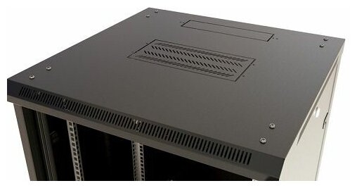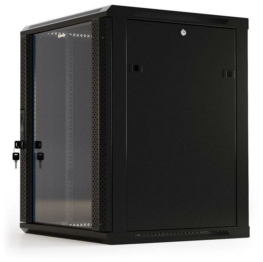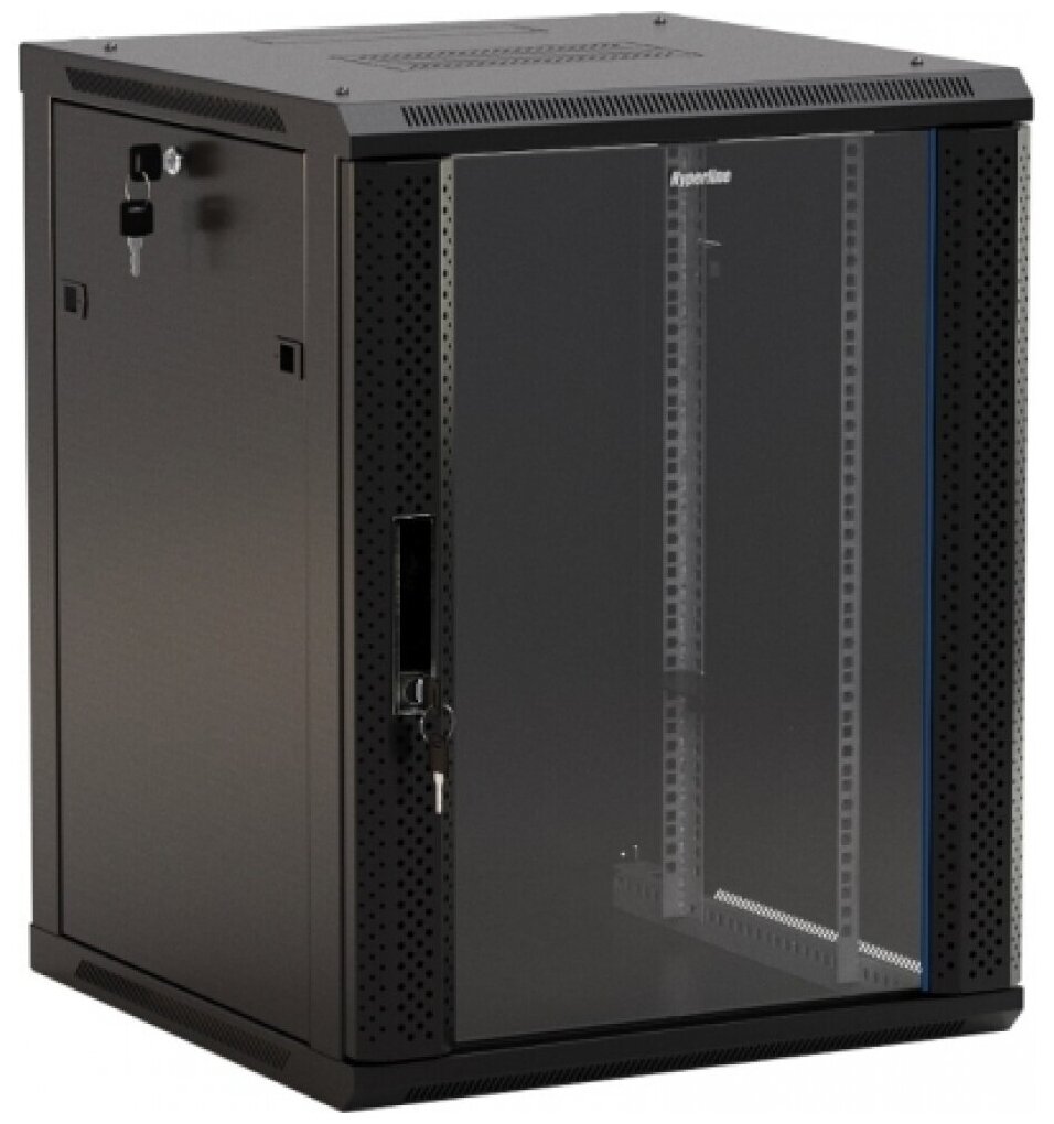 Hyperline Шкаф настенный 19-дюймовый (19"), 6U, 367x 600х 600мм, стеклянная дверь с перфорацией по бокам, ручка с замком, цвет черный (RAL 9004) (разобранный)