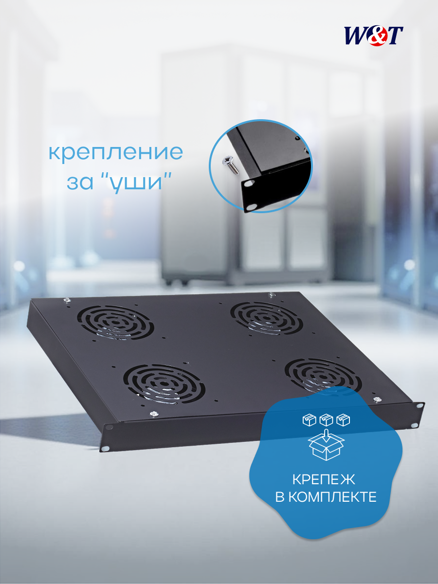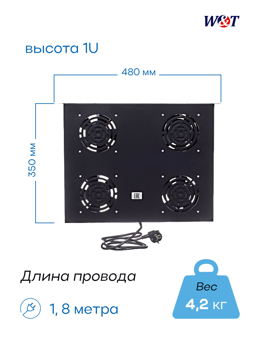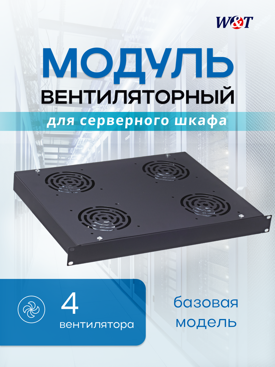 Вентиляторный блок 1U, 4 вентилятора () 1U цифровой вентиляторный блок. 4 вентиляторных блока (485х44,5х350 мм). Устанавливается в телекоммутационный шкаф с посадочным местом на 1U. Предназначен для дополнительного охлаждения активного серверного оборудования.
