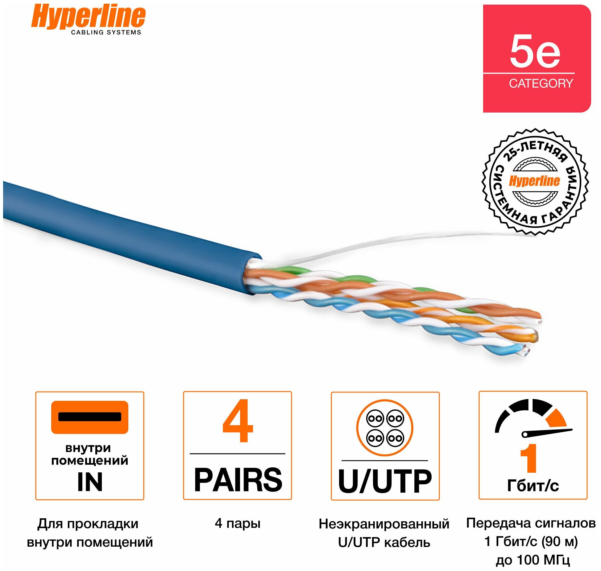 Кабель витая пара UTP 5e кат. 4 пары Hyperline UUTP4-C5E-S24-IN-LSZH-BL-305