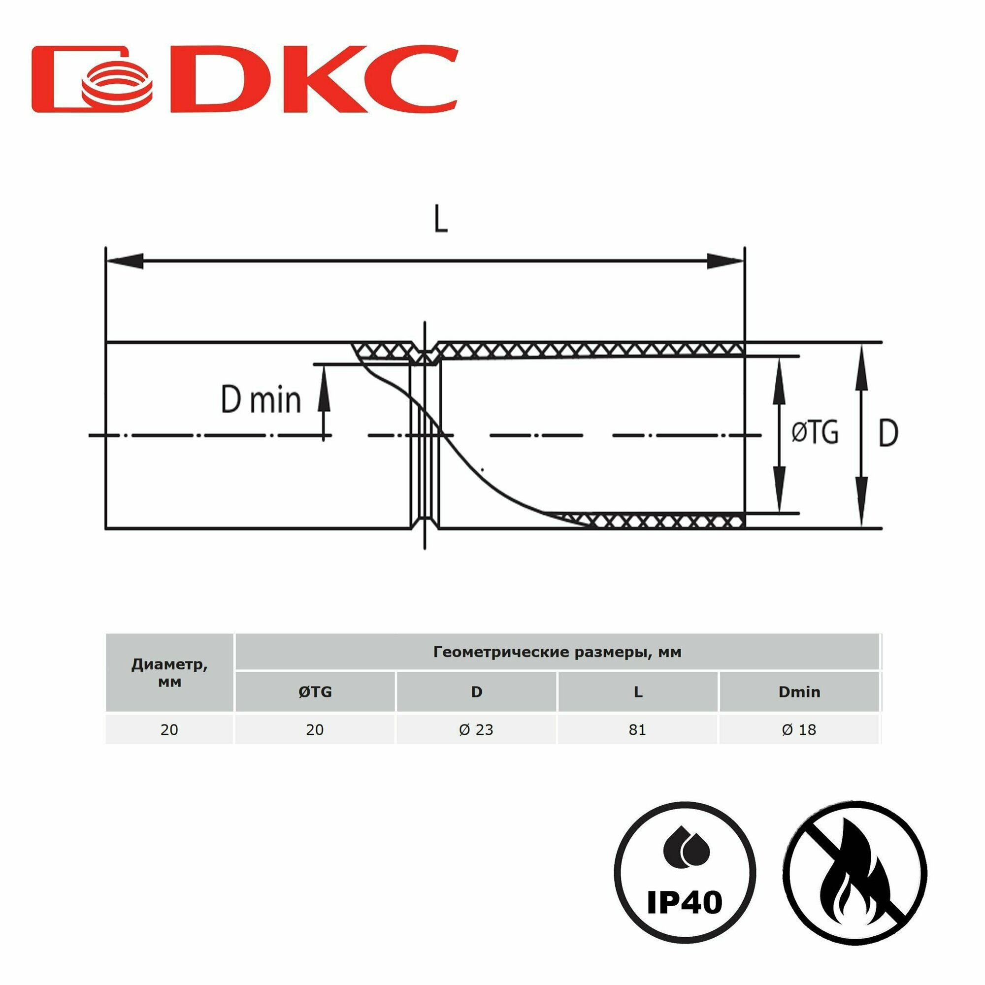 Муфта "труба-труба" с ограничителем ДКС 54920 предназначена для прямого соединения труб одинакового диаметра. Применение муфты позволяет проектировать трассы любой протяженности. В середине муфты расположен ограничитель, обеспечивающий правильное введение труб с обеих сторон. Аксессуар обеспечивает степень пыле- и влагозащиты IP 40.Внутренний диаметр – 20 мм. Материал – полипропилен. Цвет: серый, RAL 7035. Элемент системы может эксплуатироваться при широком диапазоне температур: от –25 °С до +60 °С.