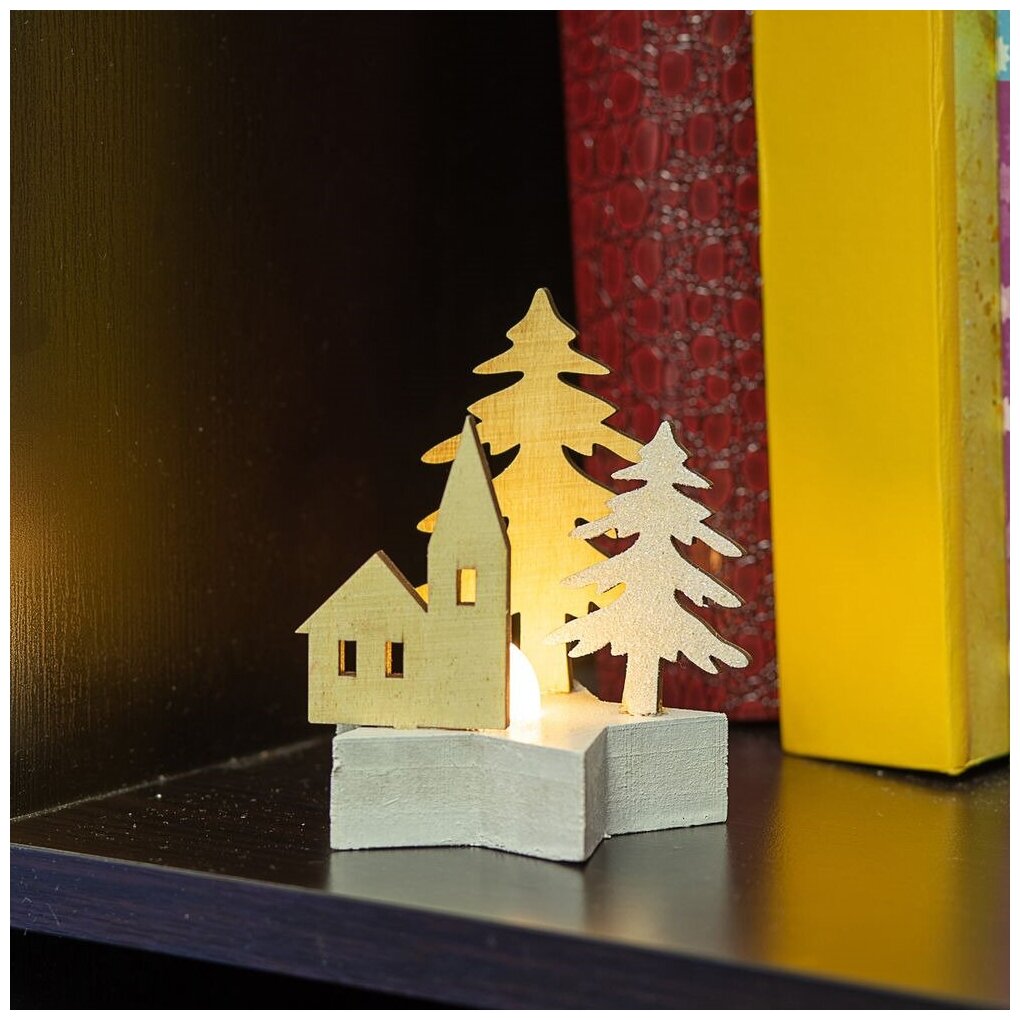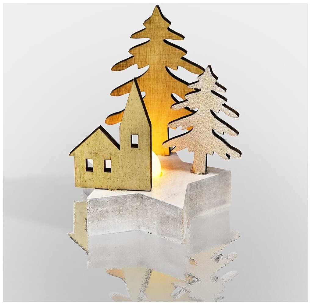 Теплое свечение и деревянное обрамление фигуры создаст уютную атмосферу и подарит ощущение праздника. Может стать прекрасным подарком для Ваших близких или интересным интерьерным решением в Вашем доме.