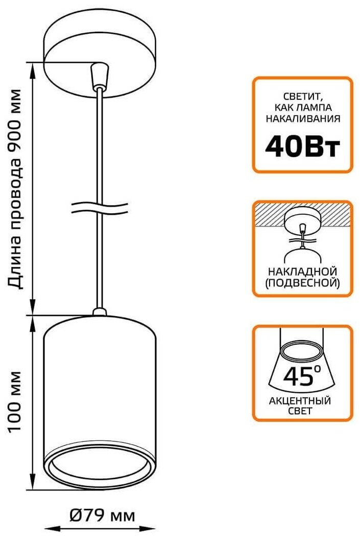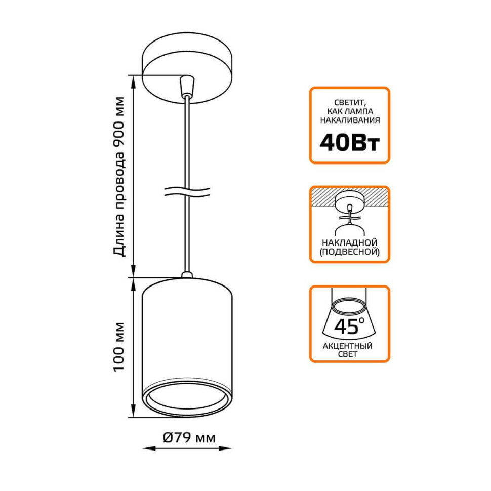 | Форма светильника | Цилиндрическая |