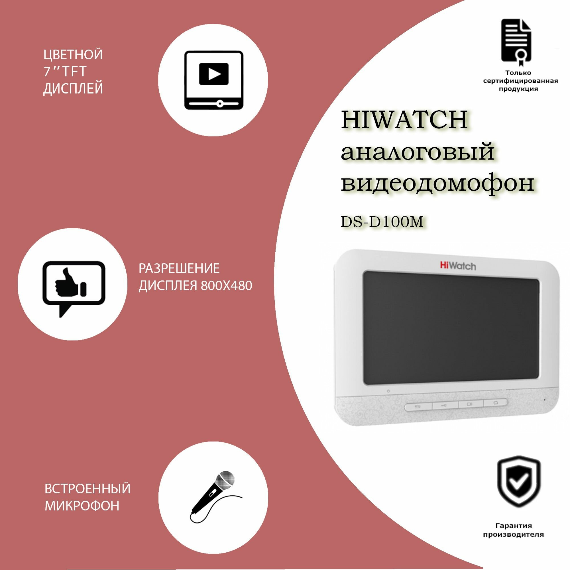 Видеодомофон HiWatch DS-D100M