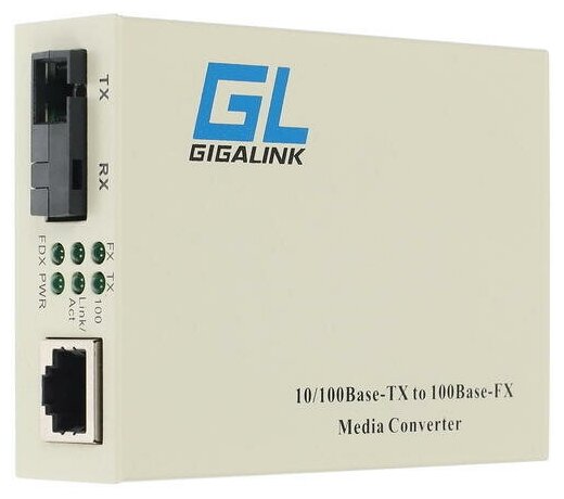 GIGALINK Конвертер из UTP, 100Мбит/c в WDM, без LFP, SM, SC, Tx:1310/Rx:1550, 18 дБ (до 20 км)