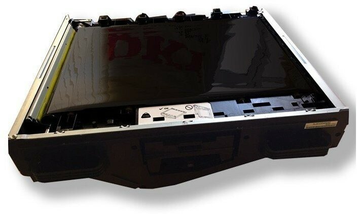 Ремень промежуточного переноса предотвращает контакт между фотовалами и бумагой, в результате чего удается избежать появления серого фона на мелованных и глянцевых носителях, а также улучшить сведение цветов при работе с носителями различной плотности.