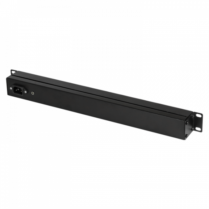 Блок электрических розеток состоит из 8 параллельно соединенных евророзеток, с общим заземляющим контактом. Фильтрующим элементом и защитой по напряжению является варистор. Блок имеет высоту 1U и оснащен фильтром и предохранителем. Для подключения используется сетевой шнур с вилкой для включения в розетку сети и разъем для включения в блок розеток. Сетевой шнур в комплект не входит. Выключатель питания выполнен с подсветкой. Блок розеток предназначен для распределения электропитания с напряжением 220В.