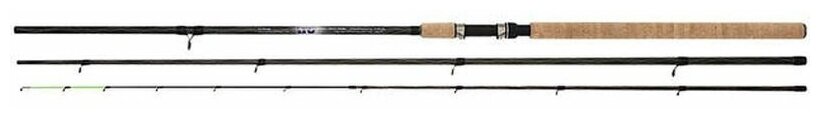Мощный фидер, выполнен из высокомодульного углеволокна IM-9. Оснащен пропускными кольцами SIC. Характеризуется отличным строем и минимальным прогибом. Предназначен для ловли на реках со средним и сильным течением с использованием средних и малых кормушек.