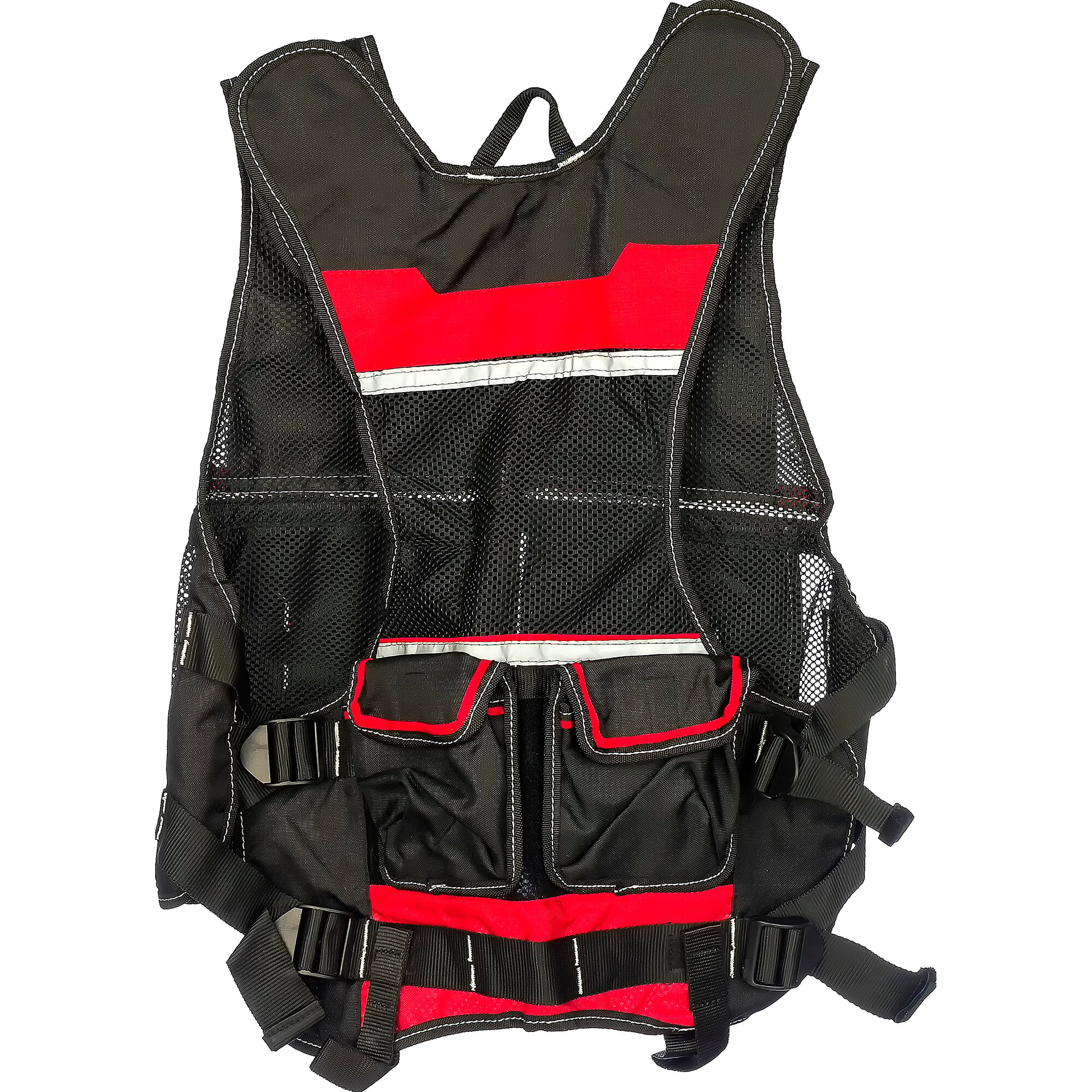 Стильный, комфортный и многофункциональный жилет монтажника. Регулировка размера при помощи липучек на плечах и четырех боковых ремней. Выполнен из влагозащищенного 1680D Оксфорд - износостойкий, устойчивый к химическим реагентам, долговечен. Задняя часть жилета изготовлена из сетчатой ткани, для большего комфорта. Большое количество карманов, подвес для карабина и дополнительные карманы на липучке сзади позволяют распределить необходимый инструмент максимально эргономично.