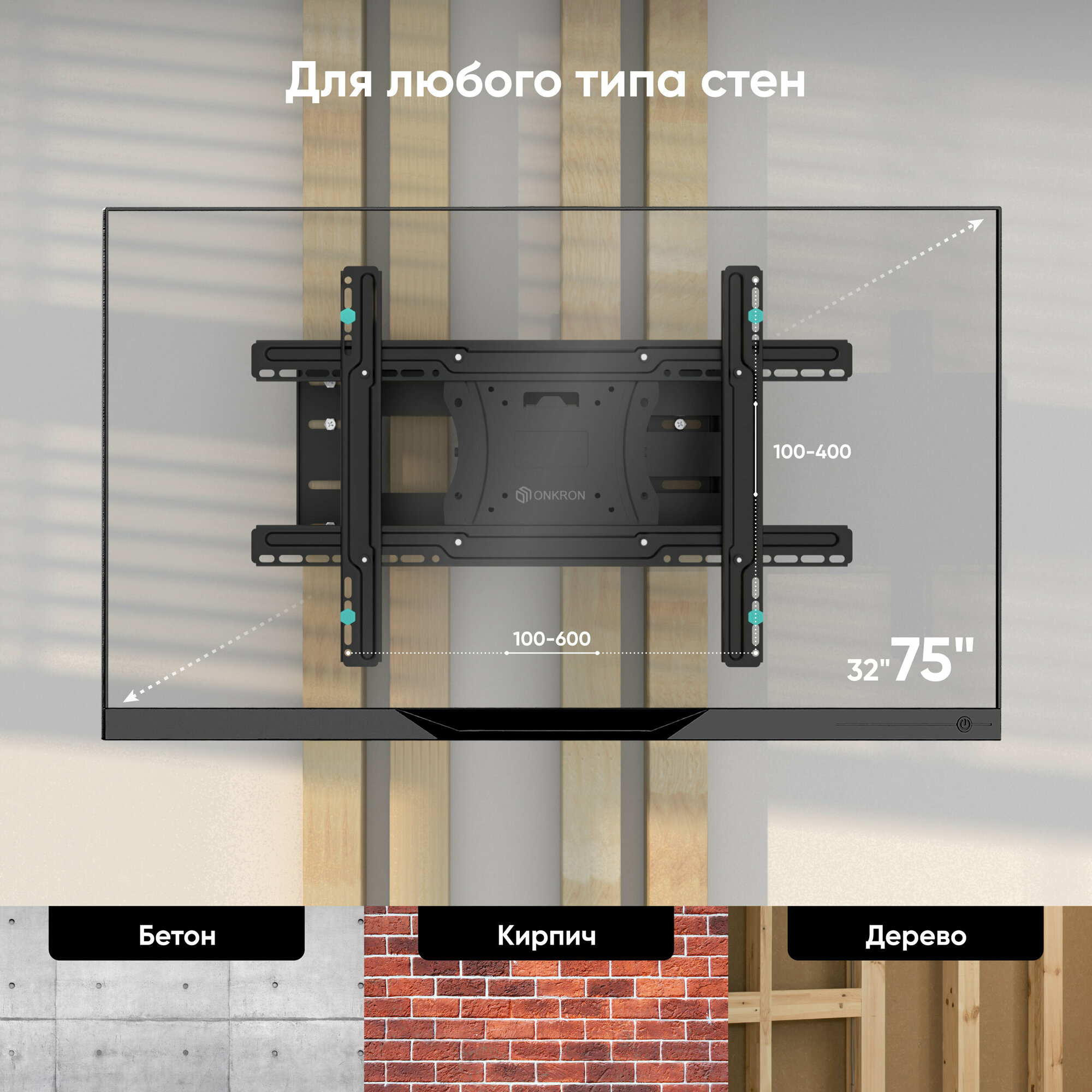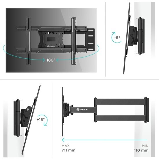 - ONKRON кронштейн для телевизора 40" - 75" наклонно-поворотный, черный NP47