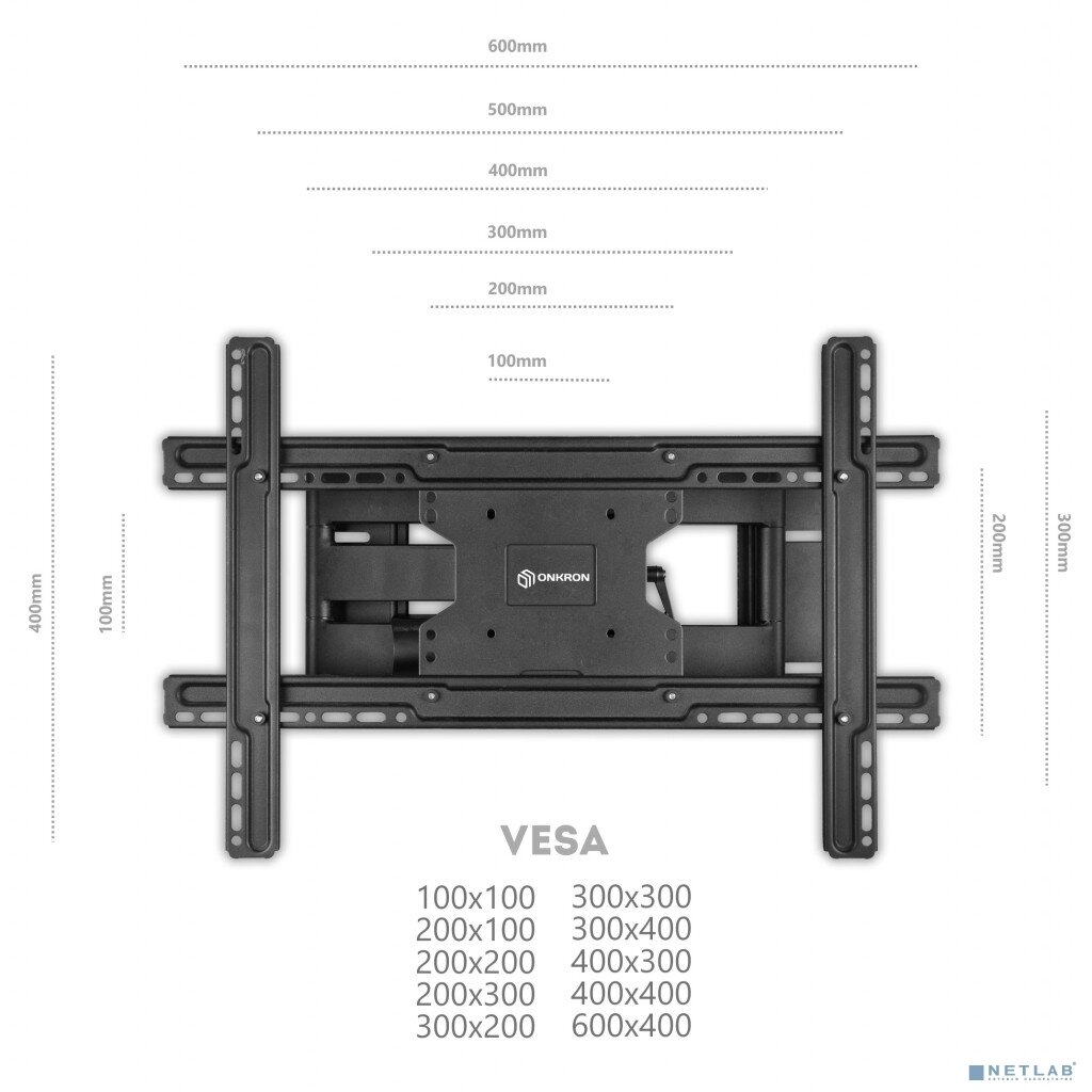 | Размер крепления VESA | 100x100 мм; 200x100 мм; 200x200 мм; 200x300 мм; 200x400 мм; 300x100 мм; 300x200 мм; 300x300 мм; 300x400 мм; 400x200 мм; 400x300 мм; 400x400 мм; 500x400 мм; 600x200 мм; 600x300 мм; 600x400 мм |