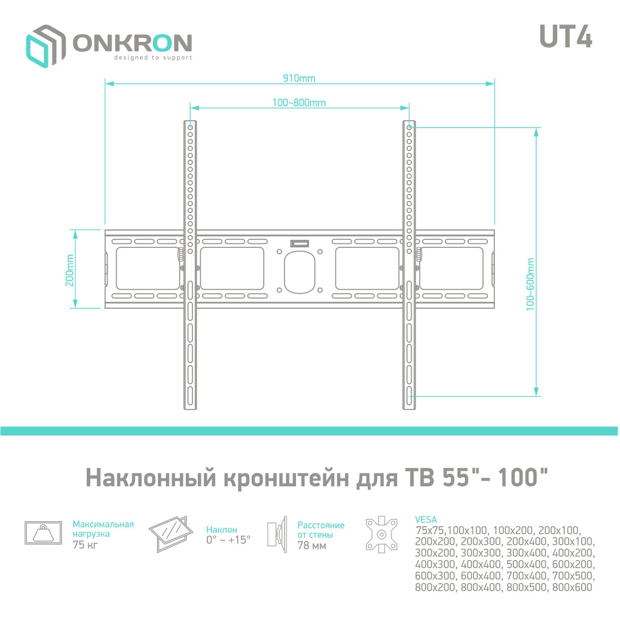 Кронштейн ONKRON/ 40-85" макс. 800*600, наклон 0-15?, поворот 0?, от стены до 78мм, вес до 75кг, черный