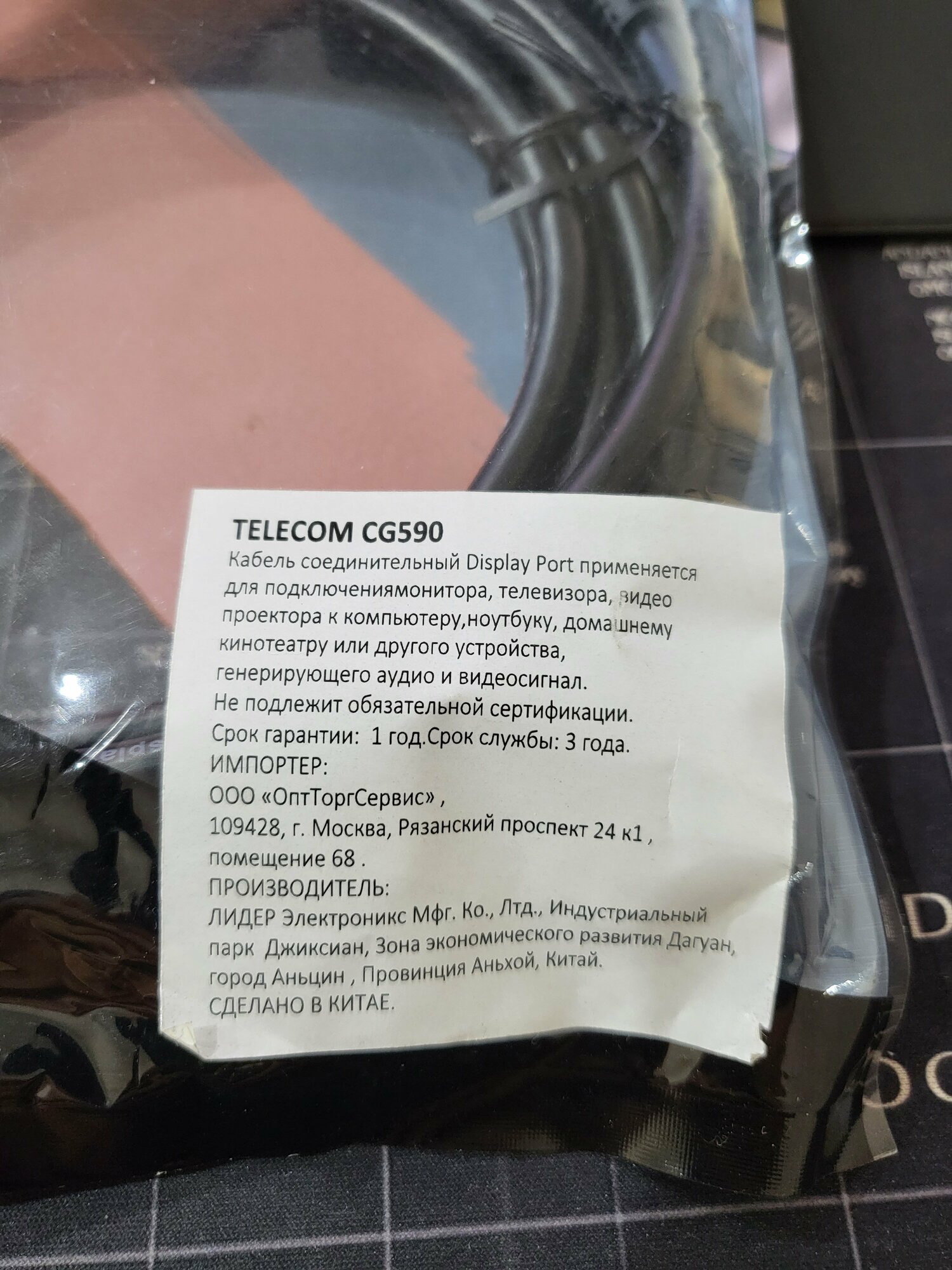 Telecom DisplayPort M 3m CG590-3M представляет собой кабель с разъемами DisplayPort на обоих концах. Кабель подобного типа является современным интерфейсом, предназначенным для соединения компьютера с монитором или системой домашнего кинотеатра. В отличие от кабеля HDMI, кабель типа DisplayPort ориентирован только на компьютеры и профессиональное оборудование. Представленная модель имеет оптимальную длину 3 метра, отличается простотой в установке, так как не требует использования винтов - свободно вставляется в гнездо одной рукой. Стоит также отметить, что Telecom DisplayPort M 1m CG590-1M изготовлен из качественных материалов, что обеспечивает его продолжительный срок службы.