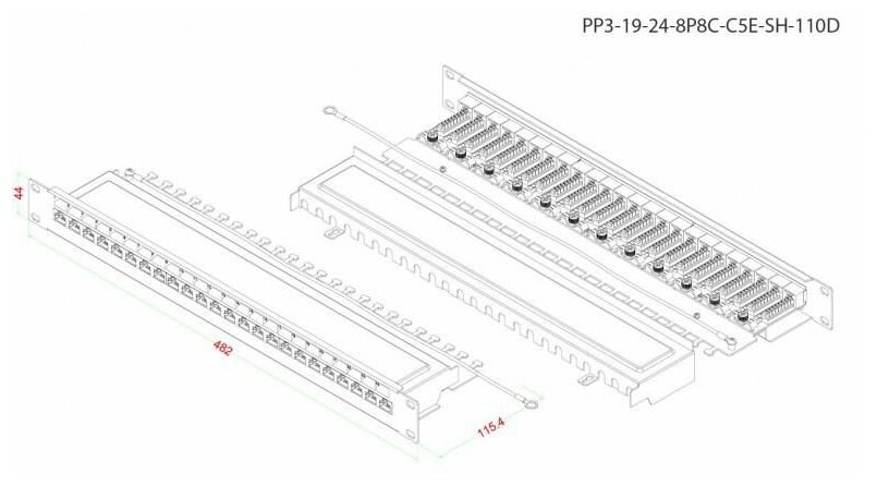 | Модель | Hyperline PP3-19-24-8P8C-C5E-SH-110D |
