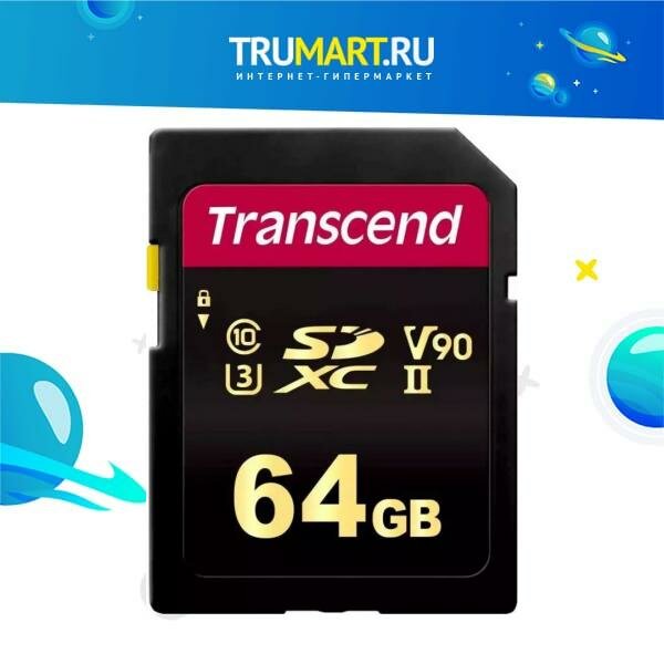 Карта памяти 64GB Transcend SDXC UHS-II Class U3 V90 чтение: 285Мб/с запись: 180Мб/с TS64GSDC700S