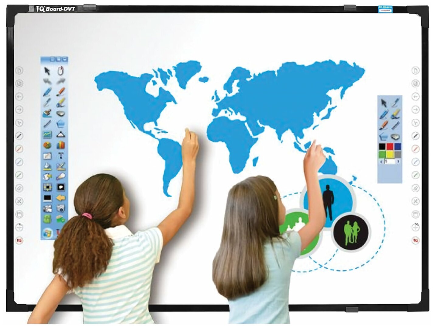 Интерактивная доска поддерживает функцию Multi-touch и функцию распознавания жестов. Интерактивные доски IQBoard DVT основаны на оптической технологии цифровых камер. Технология цифровых камер не требует использования специальных средств рисования и управления.