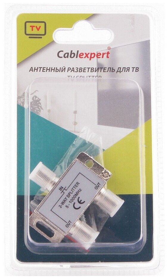Разветвитель предназначен для подключения двух телевизоров от одного телевизионного кабеля RG6. Подходит для эфирного ТВ в домах с антенной и кабельным телевидением.