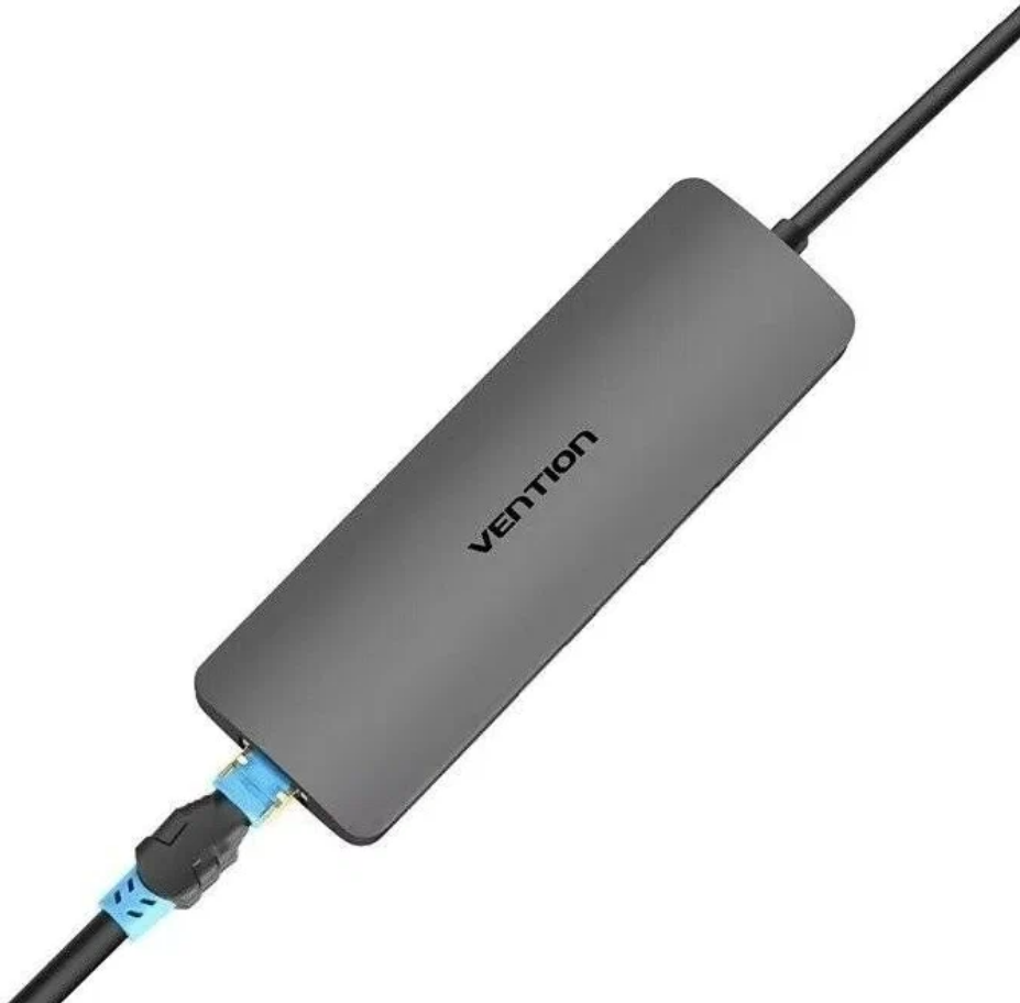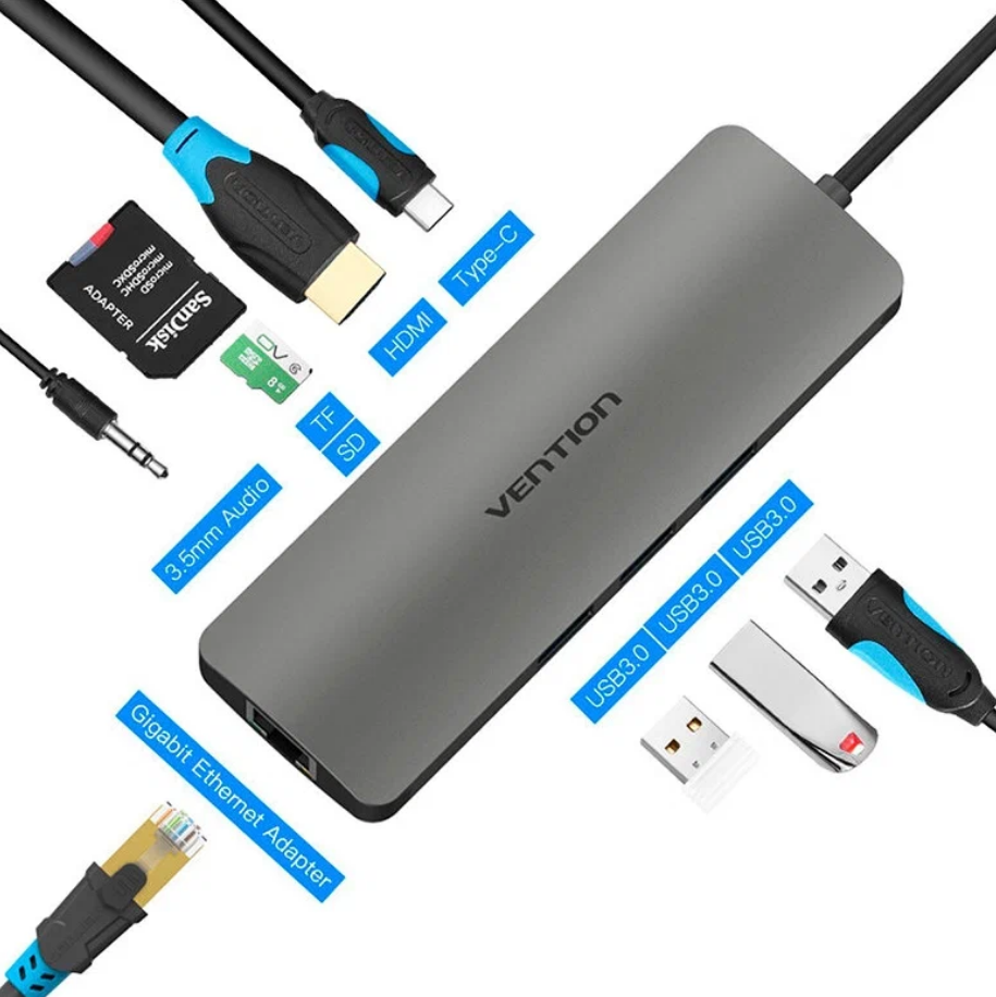 - USB-хаб Vention Aluminum 9 in 1 USB 3.1 Type-C - HDMI/USB3.0х3/Type-C/RJ45/TF/SD/3.5 audio (CGNHA)
