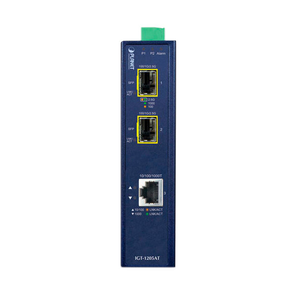 IP30 Industrial 10/100/1000T to 2-Port 100/1000X SFP Gigabit Media Converter (-40 to 75 degree C)
