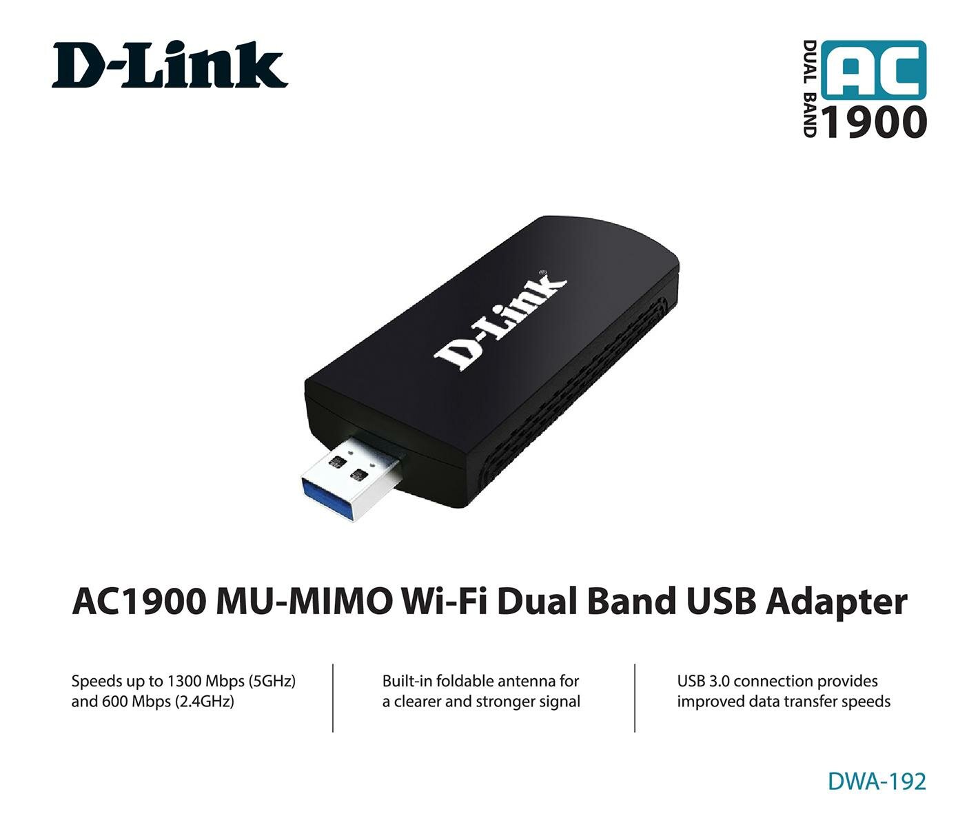 | Прочие особенности и свойства | Высокоскоростной стандарт 802.11ac и интерфейс USB 3.0,Беспроводной USB-адаптер DWA-192 стандарта 802.11ac обеспечивает увеличенную скорость передачи данных по беспроводной сети. Подключившись к сети с доступом к Интернет, можно комфортно просматривать Web-страницы и общаться с друзьями онлайн. Двухдиапазонный адаптер поддерживает работу в диапазонах 2,4 ГГц (600 Мбит/с) или 5 ГГц (до 1300 Мбит/с). Интерфейс USB 3.0 обеспечивает увеличенную пропускную способность для настольных компьютеров и ноутбуков, позволяя в полной мере использовать возможности беспроводного соединения 802.11ac.,,Полоса пропускания без помех,Благодаря поддержке двух диапазонов частоты адаптер DWA-192 позволяет использовать свободную от помех полосу пропускания в диапазоне 5 ГГц. Проверять почту и посещать Web-сайты можно в полосе частот 2,4 ГГц, а играть в режиме онлайн, совершать интернет-звонки и просматривать потоковое HD-видео – в полосе частот с низким уровнем помех 5 ГГц.,,MU-MIMO,DWA-192 поддерживает технологию MU-MIMO, что позволяет максимально использовать возможности беспроводных маршрутизаторов 802.11ac Wave 2. При подключении к маршрутизатору 802.11ac Wave 2 нескольких клиентов с поддержкой MU-MIMO, он может одновременно передавать им независимые потоки данных через разные антенны. Это позволяет более эффективно использовать радиоканал для передачи данных и значительно увеличивает общую пропускную способность сети Wi-Fi. |