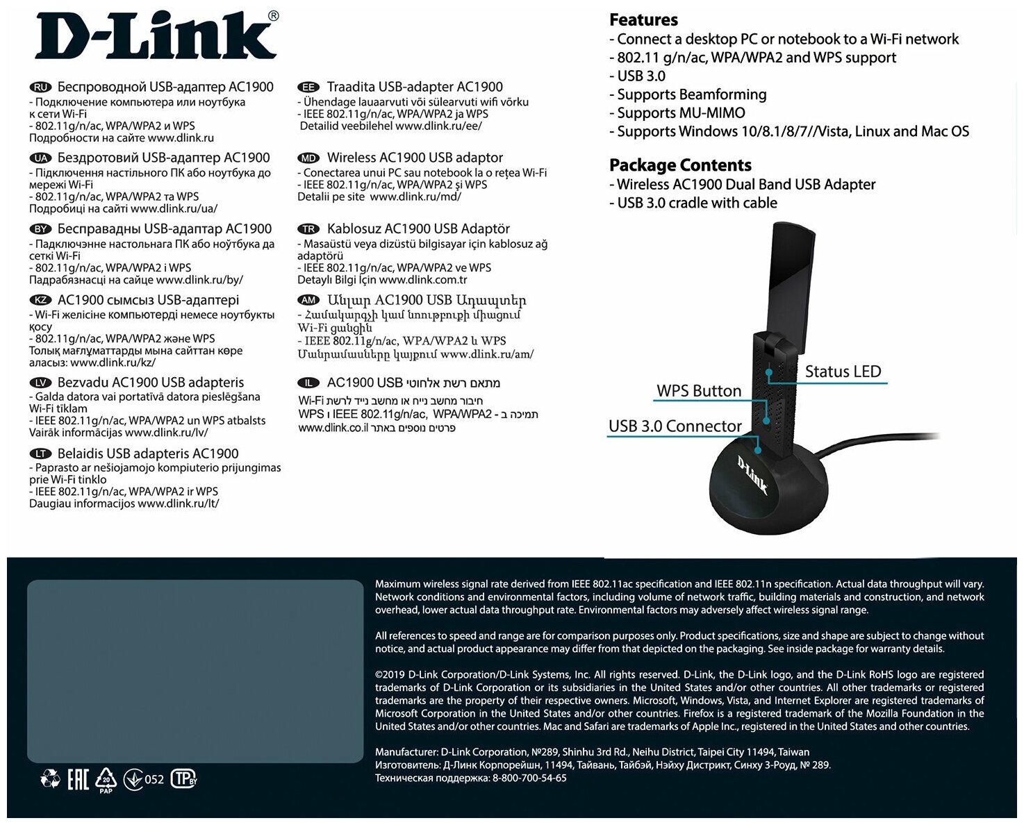 | Комплектация | Беспроводной USB-адаптер DWA-192, краткое руководство по установке, удлинитель для USB-адаптера |