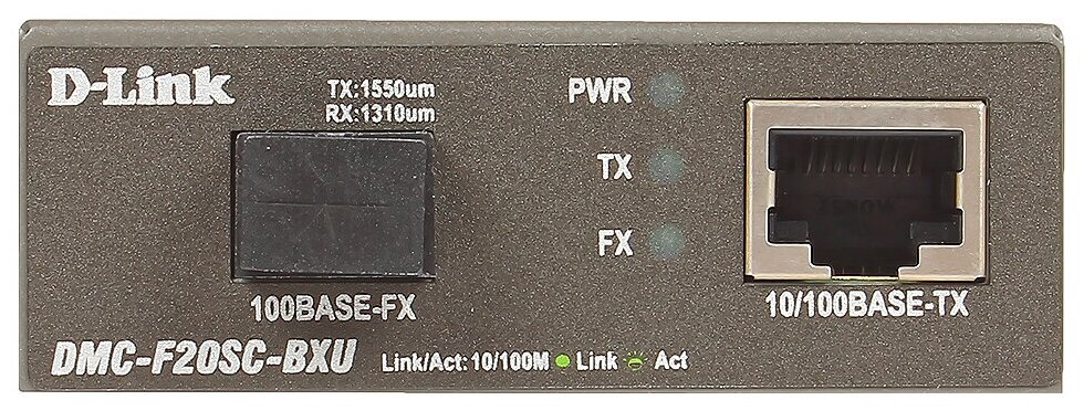 Медиаконвертеры и DMC-F20SC-BXU имеют 1 порт RJ-45 для витой пары и 1 порт для оптического кабеля (SC-коннектор). На порту для витой пары реализована поддержка автоматического определения скорости, режимов работы (полнодуплексный или полудуплексный), полярности MDI/ MDI-X, что упрощает установку медиаконвертера в существующей сети. Конвертер поддерживает функции управления, такие как LLCF (Link Loss Carry Forward, Link Pass Through) и LLR (Link Loss Return) для порта FX.