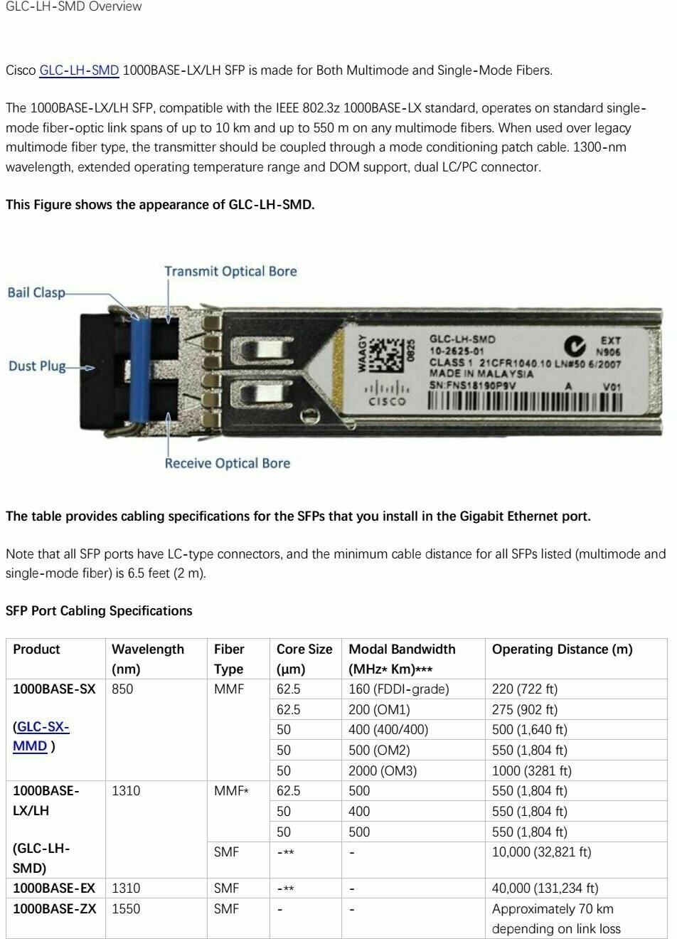 - SFP Modules GLC-SX-MM, GLC-LH-SM, GLC-ZX-SM and GLC-T Compatible with Cisco Switches