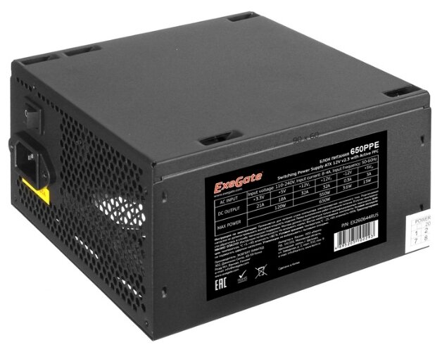 Сервис сравнения цен СкидкаГИД предлагает сравнить цены на товар «Блок питания ATX Exegate EX260644RUS-S 650W SC black APFC 12cm 24p+4p PCI-E 5*SATA 3*IDE FDD + кабель 220V с защитой от выдергивания 650PPE»