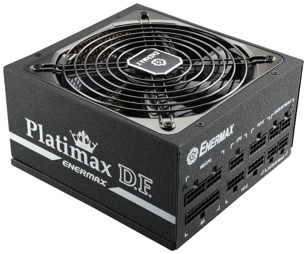 Enermax Platimax D.F. 1050W блок питания дли игровых систем. Особенностью модели является технология "Dust Free Rotation". Она опирается на крупный 139-мм вентилятор с подшипником Twister, который при включении блока питания вращается десять секунд в обратном направлении, после чего меняет направление на стандартное. Таким образом, вентилятор освобождается от пыли, которая накопилась на крыльчатке. Специальный переключатель позволяет вручную активировать режим D.F. при работе блока питания. Энергоэффективность БП соответствует стандарту 80PLUS Platinum. Благодаря умному управлению устройство работает беззвучно при нагрузке до 30%.