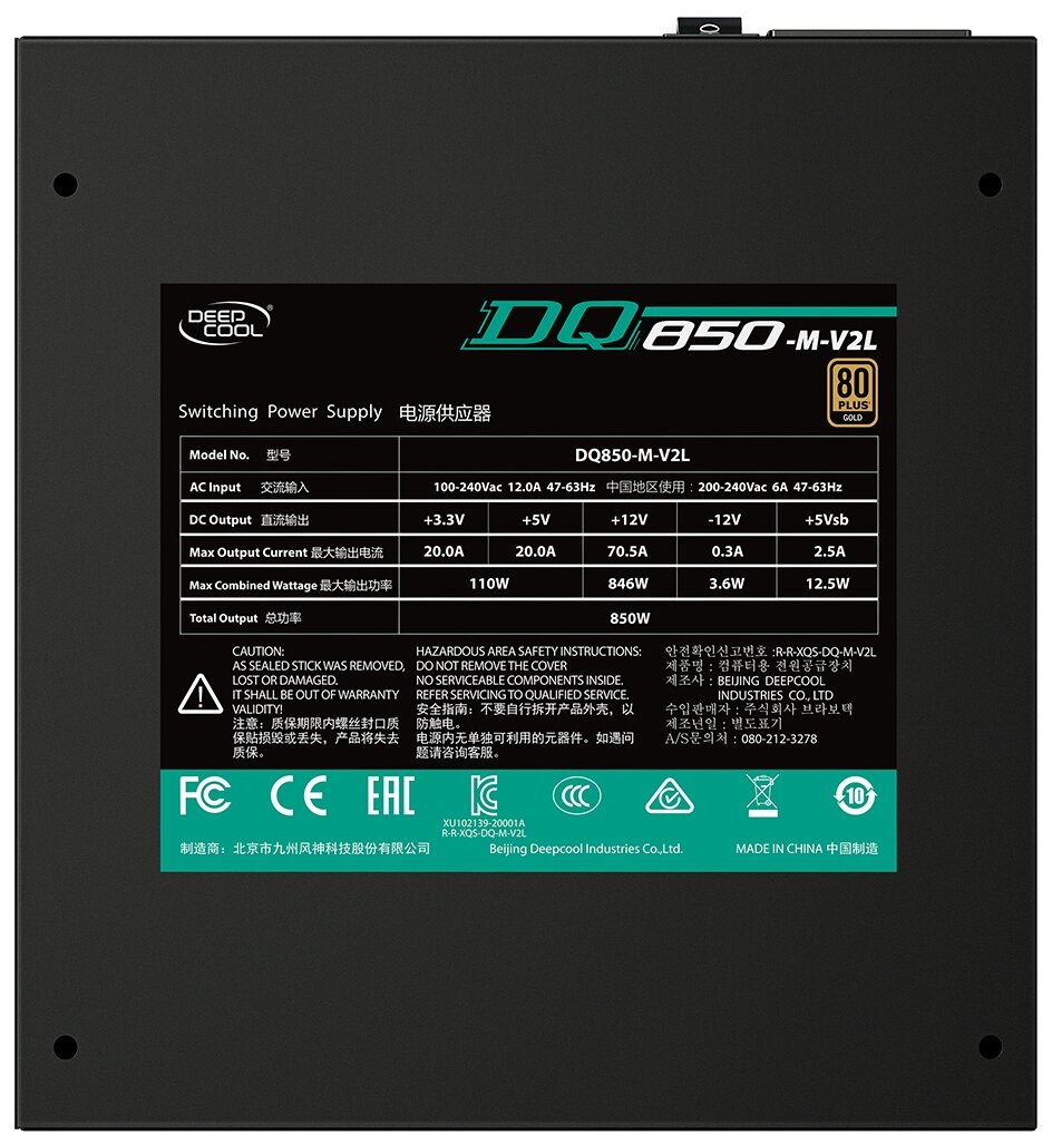 Блок питания ATX Deepcool 850W ATX 2.31 full cable management PWM 120mm fan Active PFC 80+ GOLD RET DQ850-M-V2L