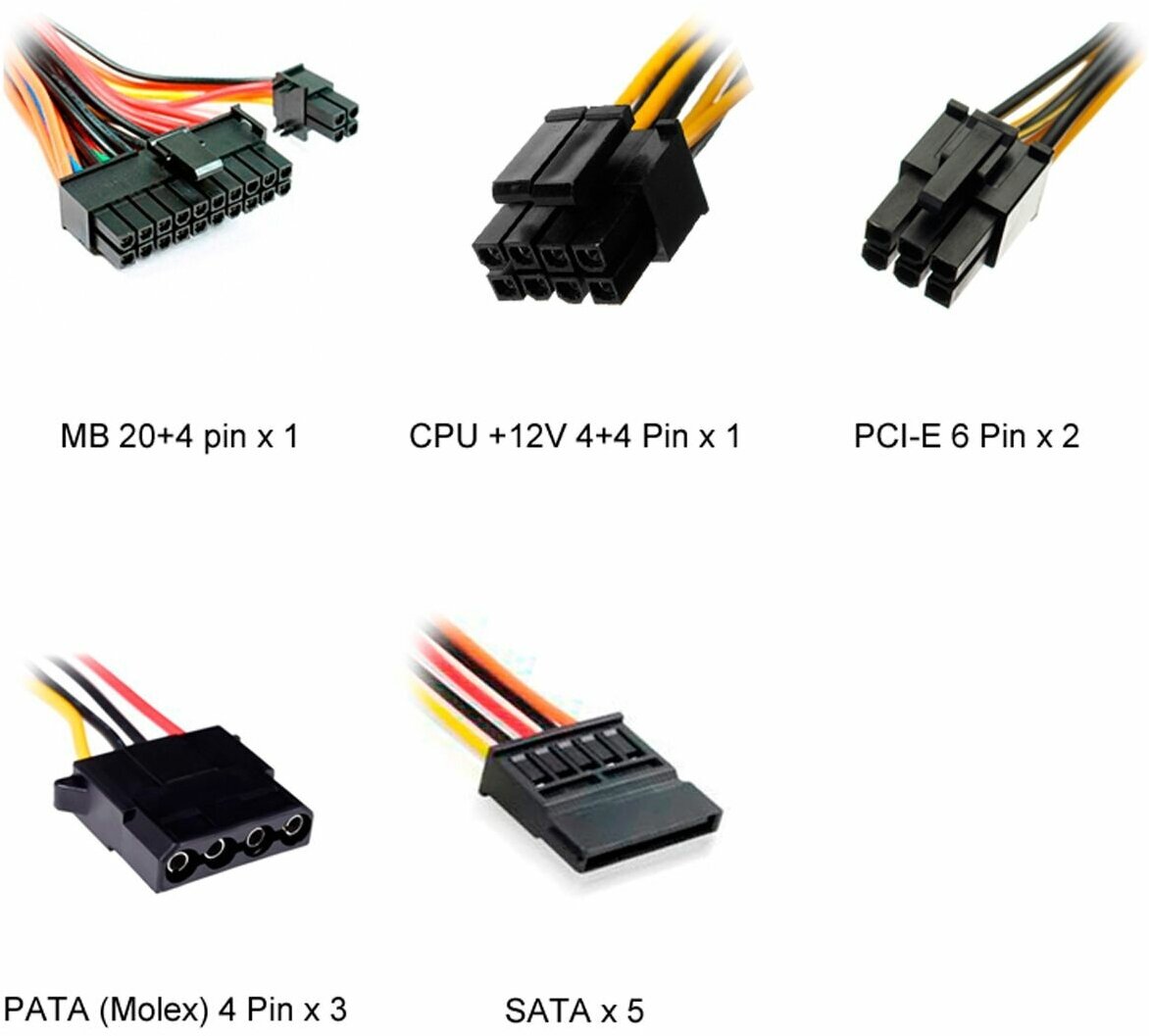 | Порты ввода-вывода | Тип разъема для материнской платы: 20+4 pin; Количество разъемов 15-pin SATA: 7; Количество разъемов 4-pin IDE |
