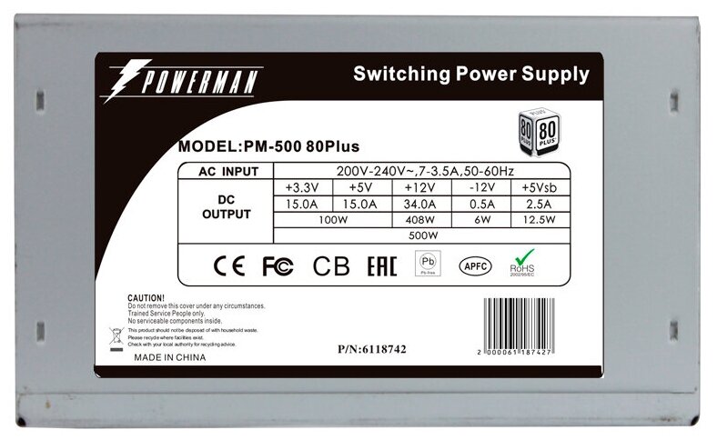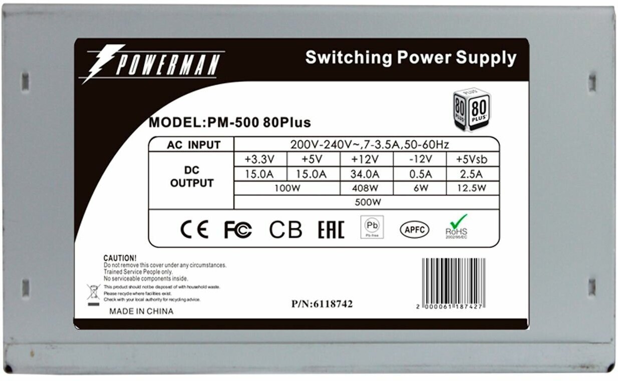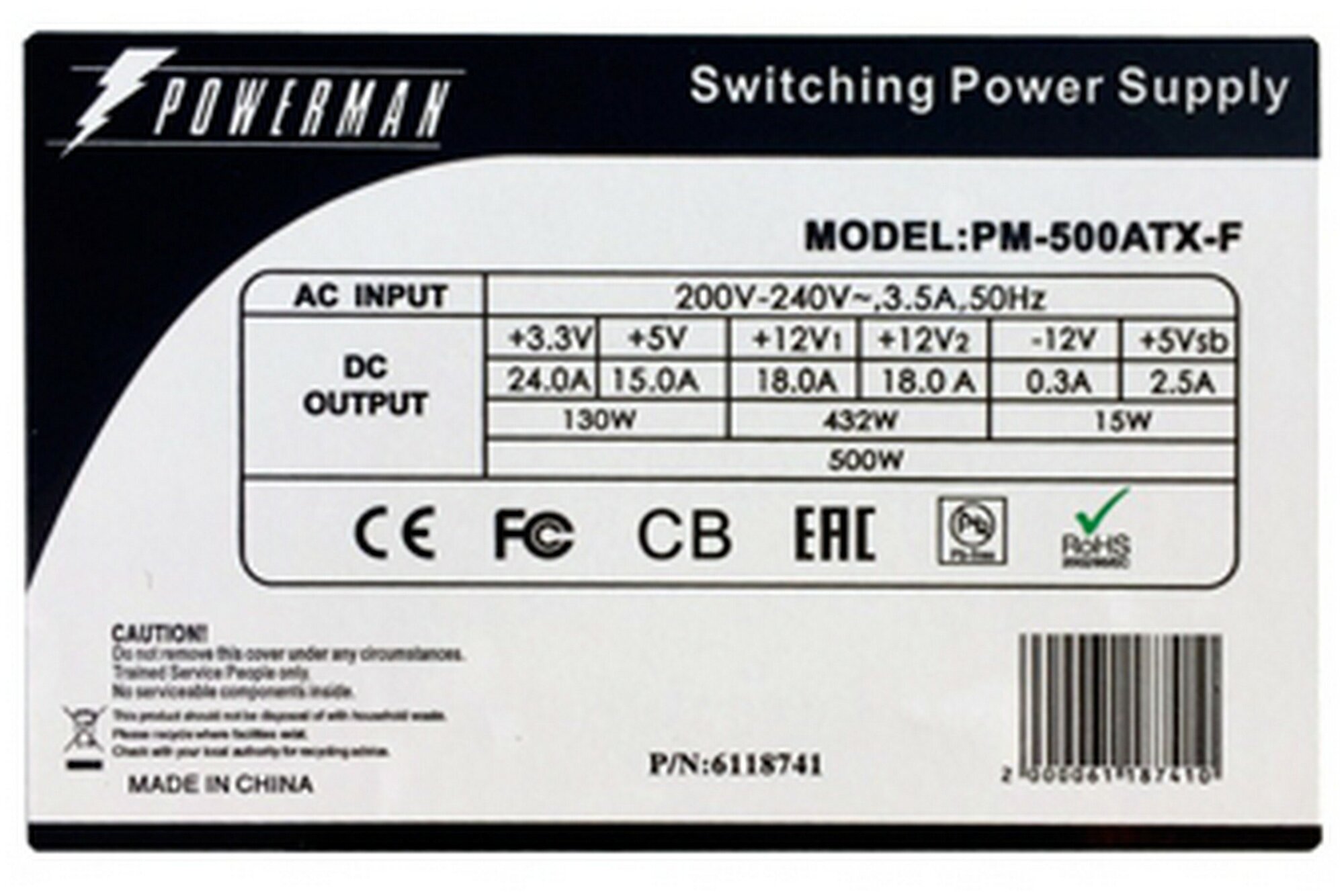 Блок питания ATX Powerman 6118742 APFC 80+ PM-500ATX