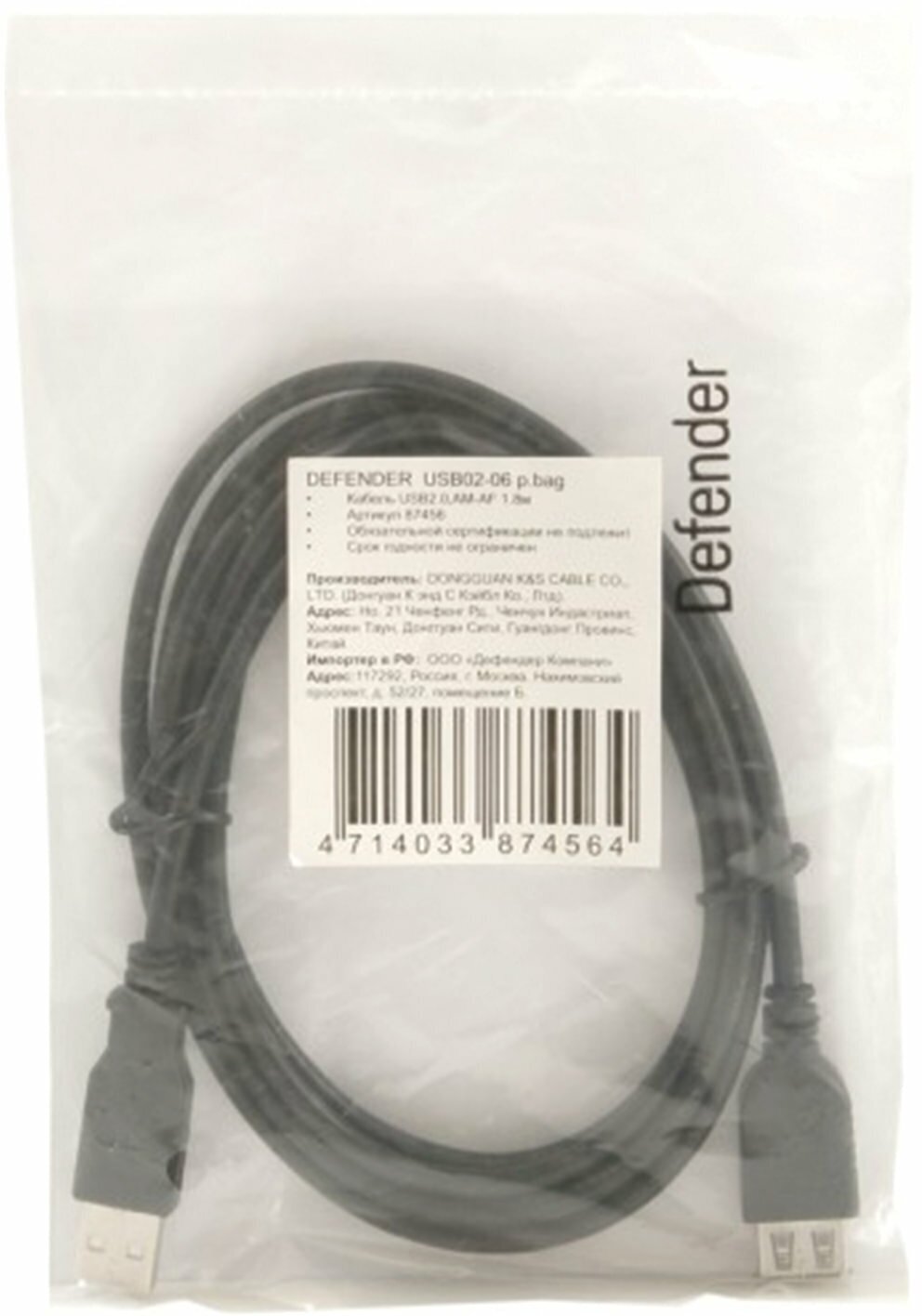 Кабель интерфейсный USB 2.0 удлинитель Defender AM/AF