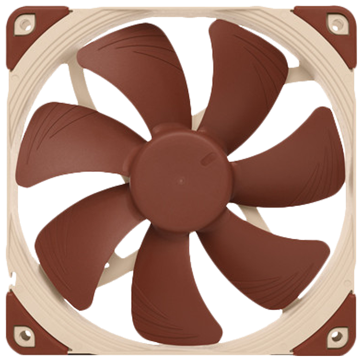 Вентилятор для корпуса Noctua исполнен в тёмных и светлых коричневых тонах, лопасти изготовлены по технологии Flow Acceleration Channels. Размеры устройства составляют 140 x 140 x 25 мм. Рама изготовлена по технологии Advanced Acoustic Optimisation. Используется подшипник SSO2. Noctua обладает низким уровнем шума и высокой эффективностью.