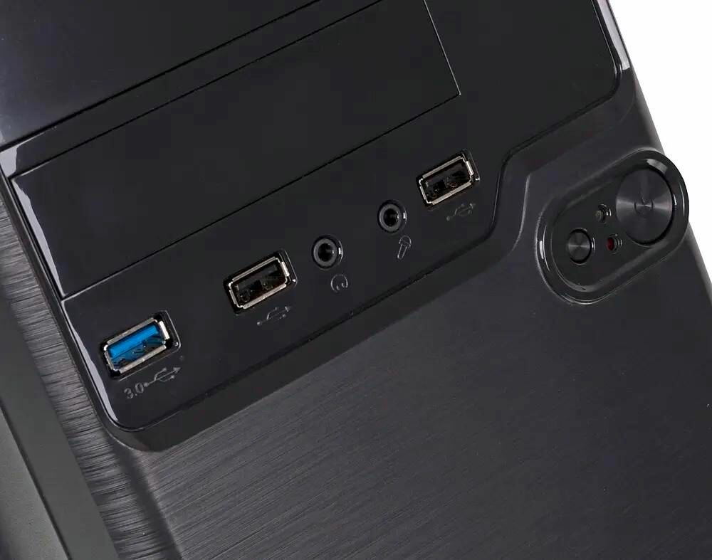 Большие размеры корпуса также дают возможность установить два 3.5 дюймовых или три 2.5 дюймовых жестких дисков/твердотельных накопителей, а вынесенные на фронтальную панель два USB порта, один классического стандарта 2.0, а другой – быстрого 3.0, выводы для наушников и микрофона, позволяют с легкостью подключать стороннюю периферию и акустику.