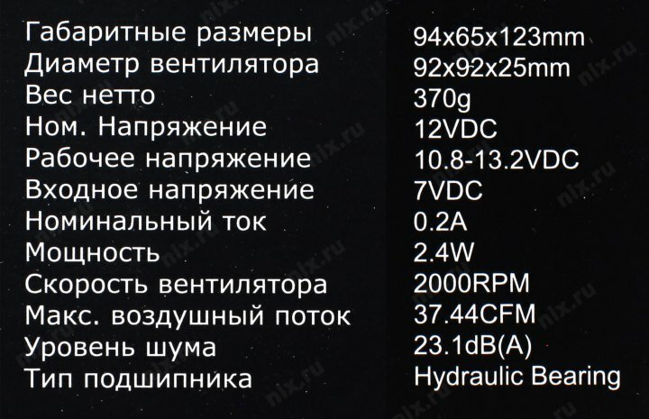Один вентилятор, установленный в кулере, имеет стандартный диаметр 92 мм, что позволяет при необходимости очень легко его заменить. Скорость его вращения регулируется автоматически и может быть до 2000 об/мин. При этом уровень шума всего 23.1 дБ.