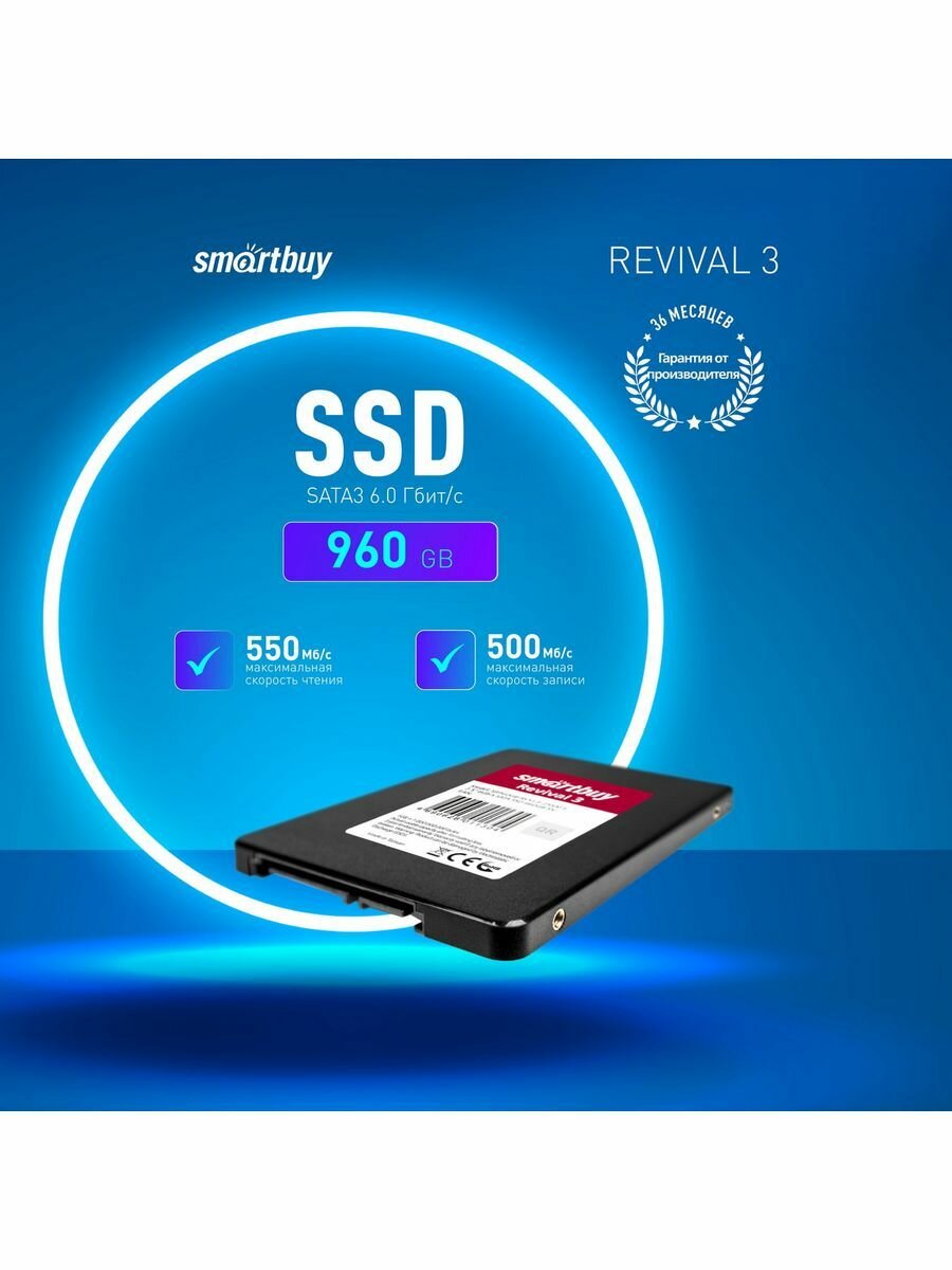 Накопитель SSD 2.5'' SmartBuy Revival 3 960GB TLC Phison PS3111 3D 550/460MB/s SATA 81K IOPS 6Gb/s MTBF 1.8M 7mm RTL SB960GB-RVVL3-25SAT3