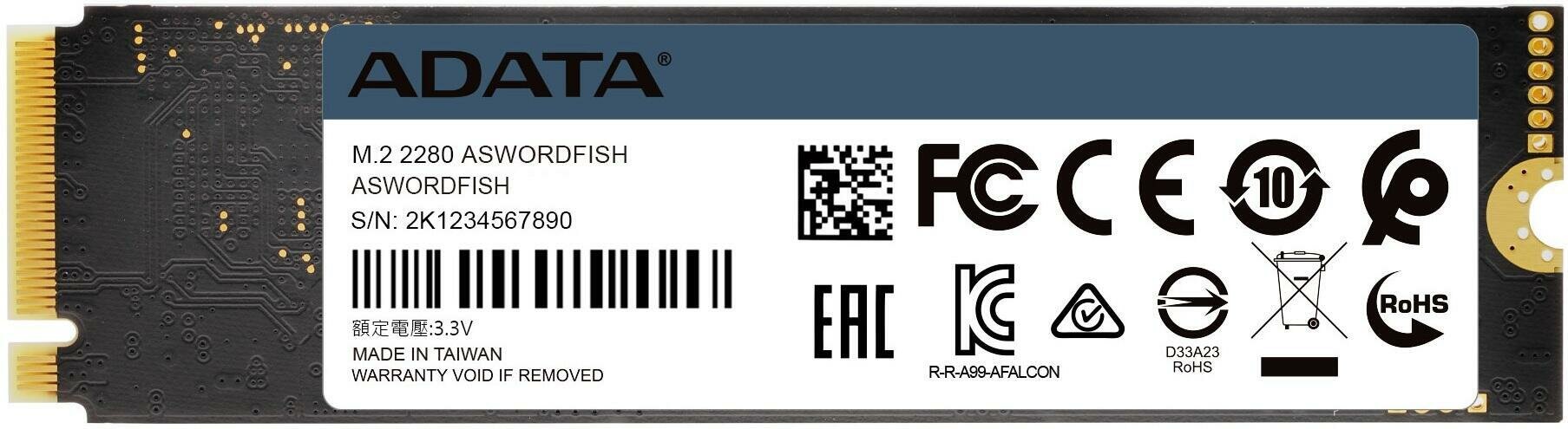Оснащенный флэш-памятью 3D NAND твердотельный накопитель SWORDFISH отличается повышенной эффективностью и надежностью по сравнению с твердотельными накопителями с памятью 2D NAND. Он выпускается в моделях различной емкости, от 250 ГБ до 2 ТБ, а срок его службы увеличен за счет применения технологий защиты данных и коррекции ошибок.