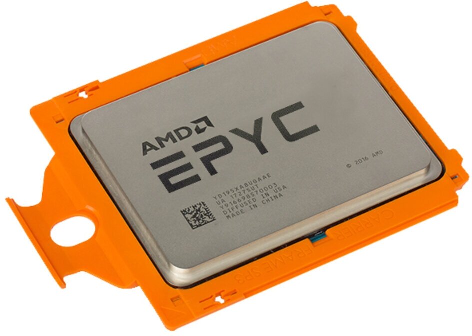 16-ядерный процессор AMD с базовой частотой 3 ГГц предназначен для использования в одно/двухпроцессорных серверных системах с разъемами SP3, кэш-память составляет 128 МБ, тепловая мощность — 155 Вт.