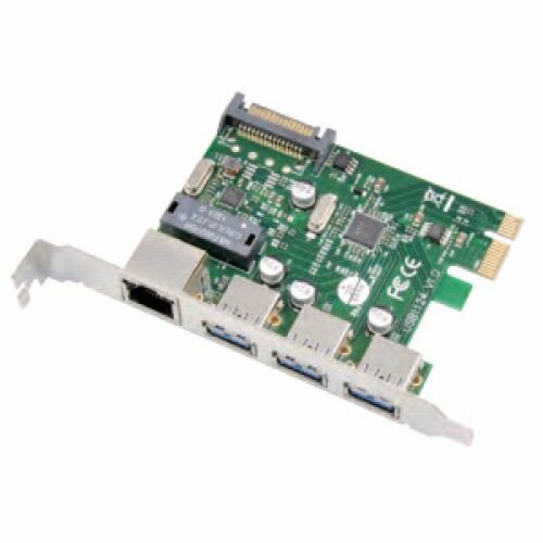 Контроллер сетевой ExeGate (PCI-E x1 v2.0, 3*USB3.0 ext. + LAN UTP 1000Mbps, разъем доп.питания, Chipset VL805 + RTL8153B)